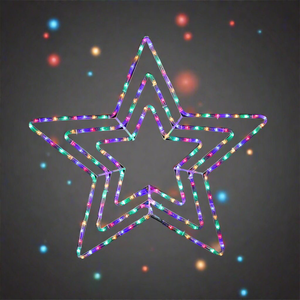 Add a magical touch to your celebrations with these warm-cool-warm flashing or Multicolor 3-in-1 star LED ropelights, versatile for any occasion.